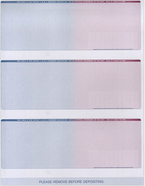 3 PER PAGE PREMIUM SECURITY BUSINESS CHECKS - NO STUB - MULTI COLOR